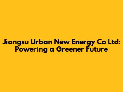 Jiangsu Urban New Energy: Powering A Greener Future