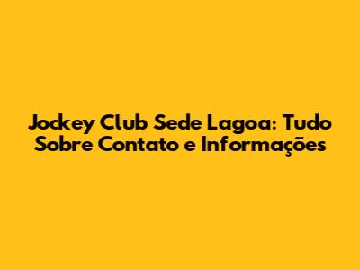 Jockey Club Sede Lagoa: Tudo Sobre Contato E Informações