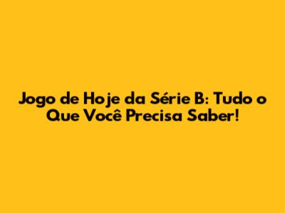Jogo De Hoje Da Série B: Tudo O Que Você Precisa Saber!