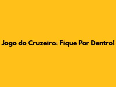 Jogo Do Cruzeiro: Fique Por Dentro!