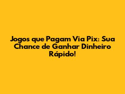 Jogos Que Pagam Via Pix: Ganhe Dinheiro Rapidamente!