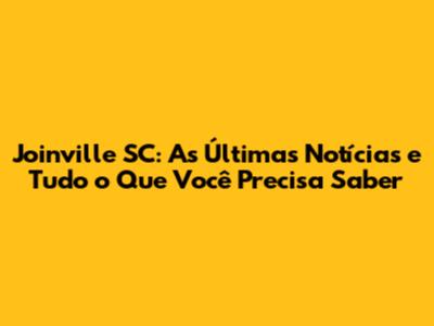 Joinville SC: Últimas Notícias, Eventos E Destaques