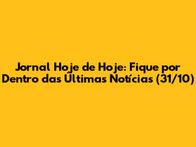 Jornal Hoje De Hoje: Tudo O Que Você Precisa Saber (31/10)