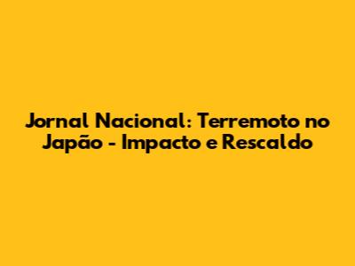 Jornal Nacional: Terremoto No Japão - Últimas Notícias