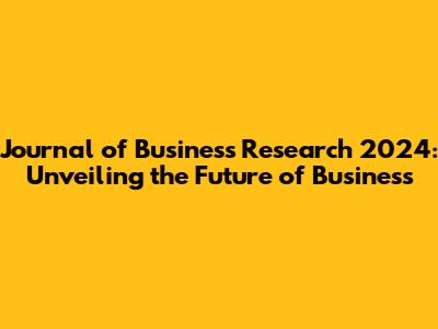 Journal Of Business Research 2024: Trends, Insights, And Future