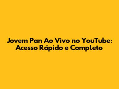 Jovem Pan Ao Vivo No YouTube: Acesso Rápido E Completo