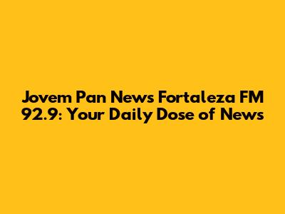 Hey guys! Ever found yourself scrolling through your phone, looking for the latest happenings in Fortaleza? Well, let me introduce you to your new go-to source: Jovem Pan News Fortaleza FM 92.9! This isn't just another radio station; it's your daily companion, keeping you in the know about everything happening in the vibrant city of Fortaleza and beyond. From breaking news to in-depth analysis, Jovem Pan Fortaleza delivers it all, straight to your ears. So, buckle up as we dive into why this radio station is a must-listen for anyone wanting to stay connected to the pulse of Fortaleza. We'll explore its programming, the personalities behind the mics, and how it’s become an integral part of the local community.