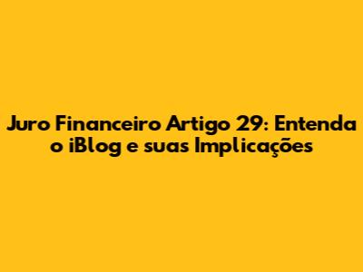 Juro Financeiro Artigo 29: Entenda O IBlog E Suas Implicações