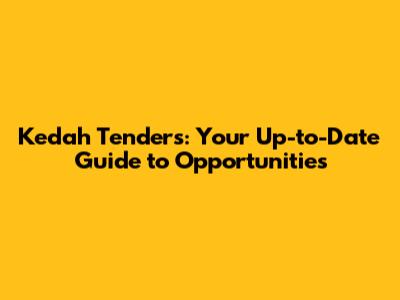 Why Kedah Tenders Matter