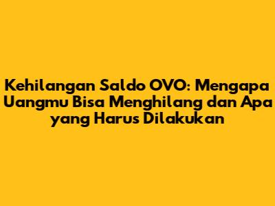 Kehilangan Saldo OVO: Penyebab & Solusi Untuk Pengguna