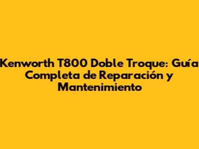 Kenworth T800 Doble Troque: Guía Completa De Reparación Y Mantenimiento