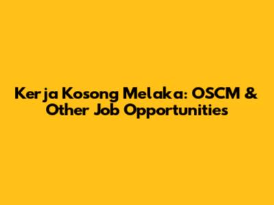 Kerja Kosong Melaka: OSCM & Other Job Opportunities