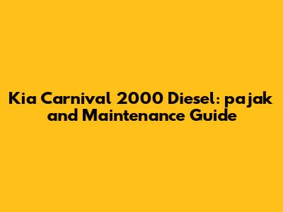 Kia Carnival 2000 Diesel: Pajak And Maintenance Guide