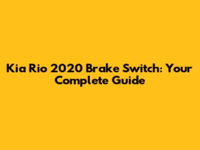 Kia Rio 2020 Brake Switch: Everything You Need To Know