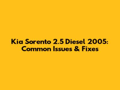 Kia Sorento 2.5 Diesel 2005: Common Issues & Fixes