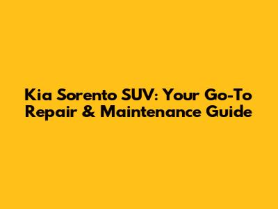 Kia Sorento SUV: Ultimate Repair & Maintenance Guide