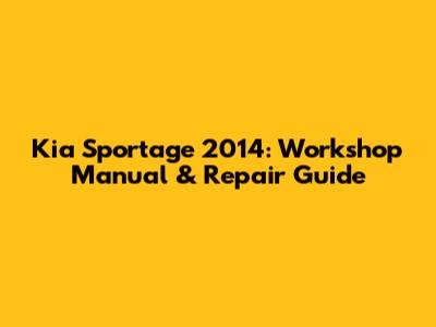 Kia Sportage 2014: Workshop Manual & Repair Guide