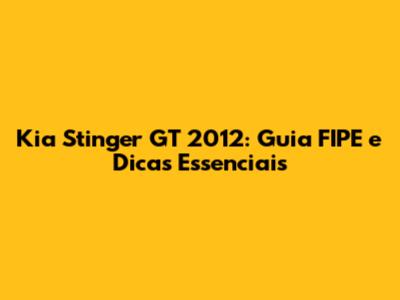 Kia Stinger GT 2012: Guia FIPE E Dicas Essenciais