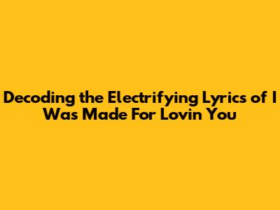 - "I was made for lovin' you, baby, you were made for lovin' me." The iconic chorus reinforces the mutual nature of the love, the core message of the song. It underscores the idea of a perfect match, a destined union. The chorus is the soul of the song, with its strong message about love.