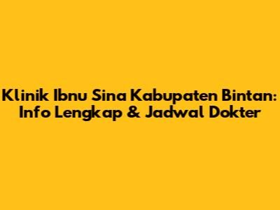 Klinik Ibnu Sina Bintan: Info Lengkap & Jadwal Dokter