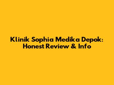 Klinik Sophia Medika Depok: Honest Review & Info
