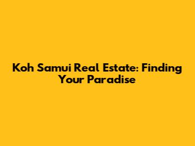 Koh Samui Real Estate: Your Dream Island Property