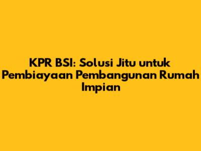 Pembiayaan pembangunan rumah BSI adalah fasilitas KPR yang ditawarkan oleh BSI untuk membantu nasabah mewujudkan impian memiliki rumah sendiri. Produk ini dirancang sesuai prinsip syariah, sehingga bebas dari riba (bunga) dan menggunakan akad jual beli yang sesuai dengan ketentuan Islam. Nah, bagi kalian yang tertarik, penting banget untuk memahami detailnya.