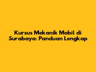 Kursus Mekanik Mobil Surabaya: Panduan Lengkap