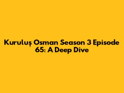 Hey everyone, let's dive headfirst into the epic world of Kuruluş Osman! We're talking about Season 3, Episode 65, a real turning point in the series. This episode was packed with action, intrigue, and those classic Kuruluş Osman moments that keep us all glued to our screens. Get ready for a recap, some analysis, and a look at what makes this episode so darn memorable. We'll be breaking down the key events, the characters who stole the show, and the overall impact of this installment on the ongoing story. Trust me, it's a wild ride, so buckle up!