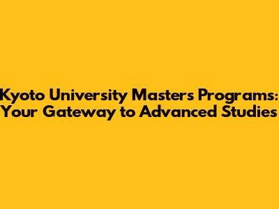 Kyoto University Masters Programs: A Comprehensive Guide