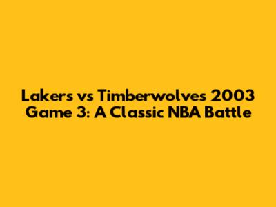 Lakers Vs Timberwolves 2003 Game 3: A Classic NBA Battle