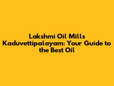 Hey guys! Ever wondered where to find the best and most authentic oil in Kaduvettipalayam? Well, look no further! We're diving deep into Lakshmi Oil Mills, a name synonymous with quality and tradition in the region. Whether you're a local or just passing through, understanding what makes Lakshmi Oil Mills stand out is super important. This isn't just about oil; it's about a legacy, a commitment to purity, and a taste of Kaduvettipalayam's finest. So, let's get started and explore everything you need to know about this awesome oil mill!