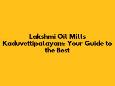 Lakshmi Oil Mills: Your Guide To Kaduvettipalayam's Best
