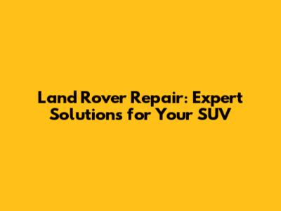 Land Rover Repair: Expert Solutions For Your SUV