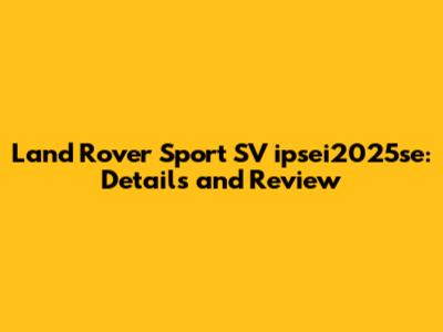 Land Rover Sport SV Ipsei2025se: Details And Review