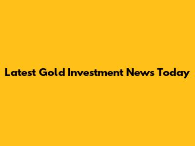 Latest Gold Investment News Today