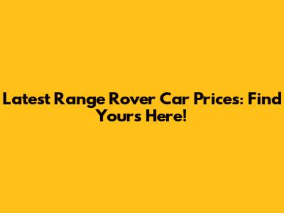 Latest Range Rover Car Prices: Find Yours Here!