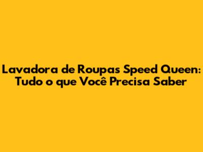 Lavadora De Roupas Speed Queen: Guia Completo E Dicas