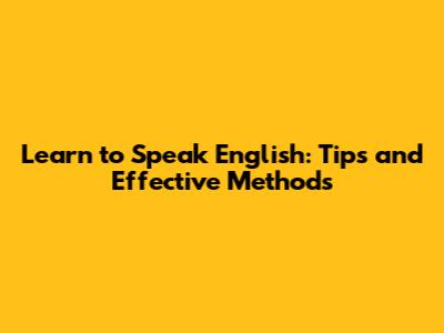 Learn To Speak English: Tips And Effective Methods