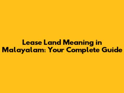 Lease Land Meaning In Malayalam: Your Complete Guide