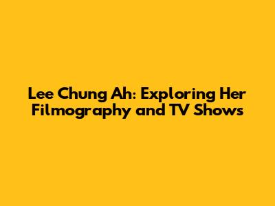 Hey guys! Ever wondered about the amazing Lee Chung Ah and the incredible journey she's had in the world of film and television? Well, buckle up because we're about to dive deep into her filmography and explore some of her most memorable TV shows. Lee Chung Ah is not just an actress; she's a versatile performer who brings depth and charisma to every role she undertakes. From gripping dramas to light-hearted comedies, she has proven time and again that she's a force to be reckoned with in the entertainment industry. So, let's get started and uncover the magic of Lee Chung Ah!