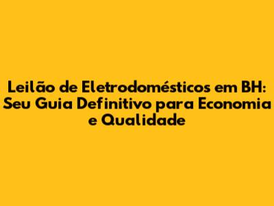 Leilão de eletrodomésticos em BH é uma excelente oportunidade para adquirir produtos de qualidade com preços significativamente menores. Se você está em busca de geladeiras, fogões, máquinas de lavar ou outros eletrodomésticos em Belo Horizonte, este guia completo irá te mostrar tudo o que você precisa saber sobre leilões, desde como participar até as melhores dicas para arrematar ótimos produtos.