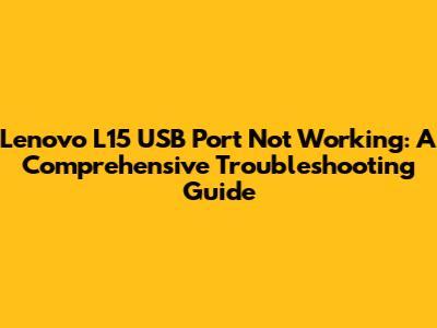 Lenovo L15 USB Port Troubleshooting Guide