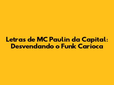 Fala, galera! Se você curte um funk que mexe com a alma e conta histórias do asfalto, com certeza já ouviu falar do MC Paulin da Capital. Esse cara é um dos nomes mais respeitados no cenário do funk carioca, e suas letras são verdadeiros retratos da vida nas comunidades, das batalhas do dia a dia e dos sonhos de quem vive na correria. Neste artigo, vamos mergulhar fundo no universo das letras de MC Paulin da Capital, explorando o que torna suas músicas tão impactantes e por que ele conquistou tantos fãs.