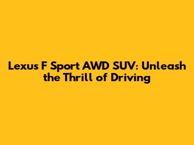 Hey there, car enthusiasts! Are you ready to dive into the exhilarating world of the Lexus F Sport AWD SUV? This vehicle isn't just about getting from point A to point B; it's about enjoying every second of the journey. We're talking about a fusion of luxury, performance, and cutting-edge technology, all wrapped up in a sleek and stylish package. Whether you're a seasoned driver or just starting out, the F Sport AWD SUV is designed to impress. So, buckle up as we explore what makes this ride so special, covering everything from its stunning design and powerful performance to its advanced safety features and overall driving experience. Let's get started and discover why the Lexus F Sport AWD SUV might just be your dream car!