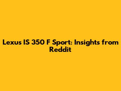 Lexus IS 350 F Sport: Insights From Reddit