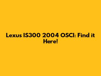 Lexus IS300 2004 OSCI: Find It Here!