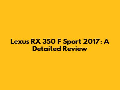 Lexus RX 350 F Sport 2017: A Detailed Review