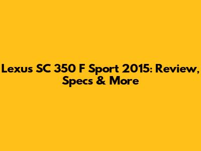 Lexus SC 350 F Sport 2015: Review, Specs & More