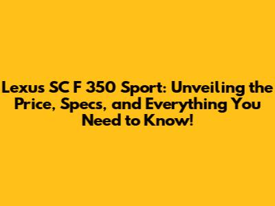Lexus SC F 350 Sport: Price, Specs, And More!